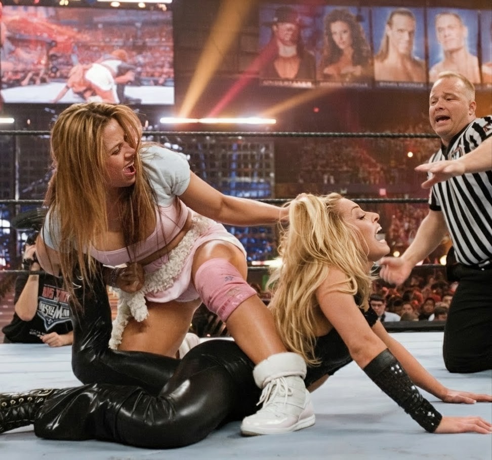 Aside from the fact that Mickie’s delulu parasocial character seems to have become a commonplace in 2026 fandoms…twenty years ago it was pretty fresh. Plus yes, the kiss and Mickie’s finger lick was a high point for Millennial and Gen X fans alike (for obvious reasons, don’t judge me) – it helped to catapult her to being one of the women to be heralded for the turn from garbage mud wrestling and Diva catfights, to actual scripted combat like the men.